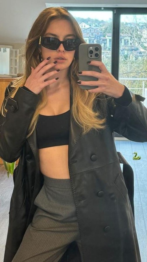 Baştan ayağı siyah giymeyi tercih eden Melis Sezen, fotoğrafına yılan emojisi ekledi.