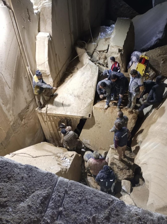 Balıkesir'e bağlı Marmara Adası'ndaki mermer ocağında meydana gelen toprak kayması sonucu göçük altında kalan 2 işçi yaşamını yitirdi.
