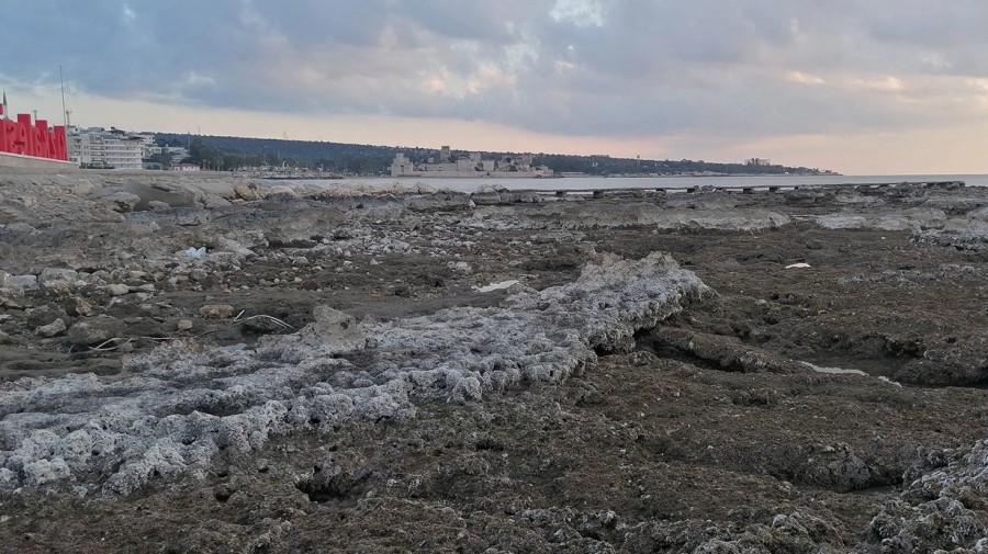Sahil eski seviyesine gelirken, halkın üzerinde yürüdüğü kayalıklar ve kumsal suyla kaplandı.