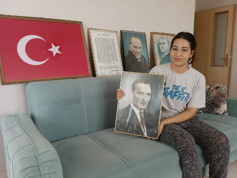 Bayrağımız, kurtarıcımız Mustafa Kemal Atatürk ve Gençliğe Hitabe tablosunu yerlerden toplayıp götürdüğü evinde gözü gibi bakan Arife Sezer konuya ilişkin açıklamada bulundu.