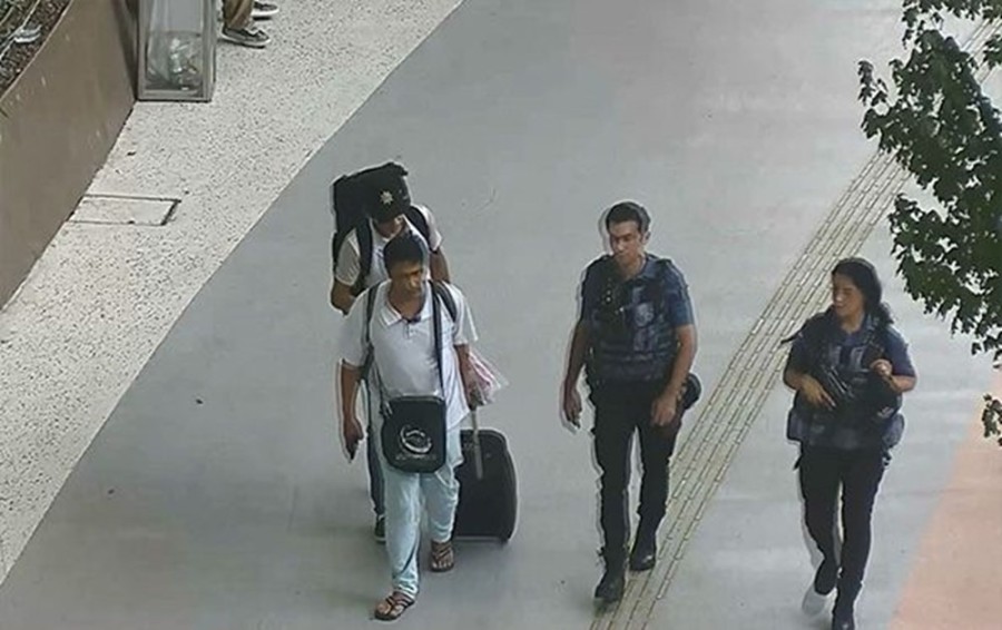 Havalimanından ayrılmak için taksi bekledikleri sırada yakalanan B.M. ile arkadaşı, İstanbul Havalimanı Emniyet Şube Müdürlüğüne getirildi.