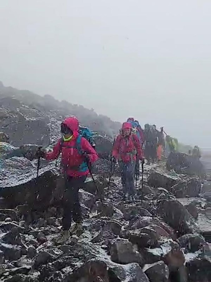 Türkiye'den ve yurt dışından zirveye tırmanışa gelen dağcılar ise kar yağışı nedeniyle zor anlar yaşadı.