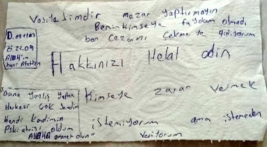 "Peçeteye 'Mezar taşımı yaptırmayın. Vasiyetimdir. Acımı çekmeye gidiyorum. Kimseyi üzmek istemedim ama istemeyerek de olsa herkesi çok üzdüm' yazmış. Notun sol tarafına doğum tarihini, sağ tarafına da ölüm tarihi olarak 22 Eylül'ü yazıyor. İl merkezinde Uncalı Emniyeti'nin Kayıp Büro Amirliği'ne gittik. Bize kayıp olmadığını, telefon sinyalinin Muratpaşa'da olduğunu, yeni sinyal takibi yapacaklarını söylediler. Hala haber yok. Telefon sinyali Muratpaşa'da, bu güzel bir haber aslında ama telefonun Halil'de olup olmadığı belli değil. Halil, şu anda sağlıklı mı değil mi? Birisiyle mi kalıyor? Hiçbir şekilde bilmiyoruz. Bulunmasını istiyoruz" ifadelerini kullandı.