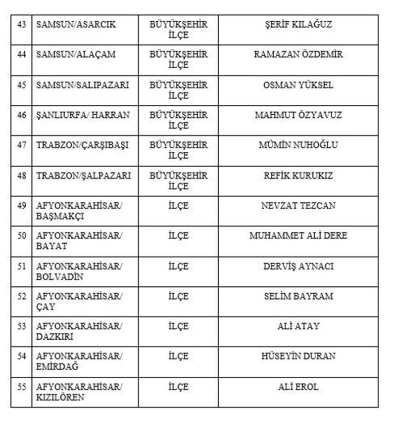 MHP'NİN BELEDİYE BAŞKAN ADAYLARI LİSTESİ
