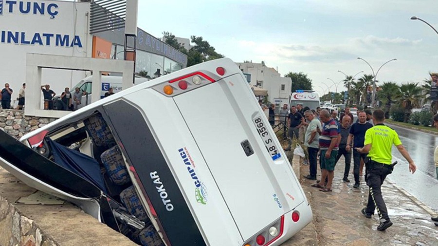 Milas'tan yola çıkan, araç bakım servisi firmasında çalışan işçileri taşıyan Ahmet Varlı yönetimindeki 48 S 3568 plakalı midibüs, Atatürk Bulvarı'nda yağış nedeniyle kayganlaşan yolda kontrolden çıktı.