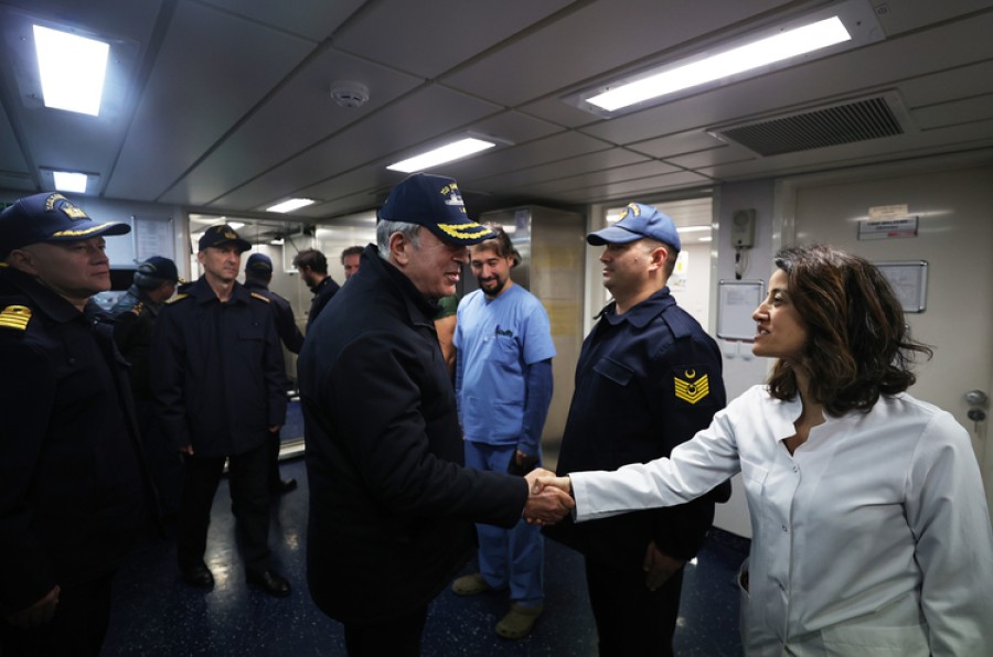Milli Savunma Bakanı Hulusi Akar da beraberinde Genelkurmay Başkanı Orgeneral Yaşar Güler, Deniz Kuvvetleri Komutanı Oramiral Ercüment Tatlıoğlu ve Hava Kuvvetleri Komutanı Orgeneral Atilla Gülan ile hastanede olarak hizmet veren gemide incelemelerde bulundu, tedavi gören vatandaşları ziyaret etti.