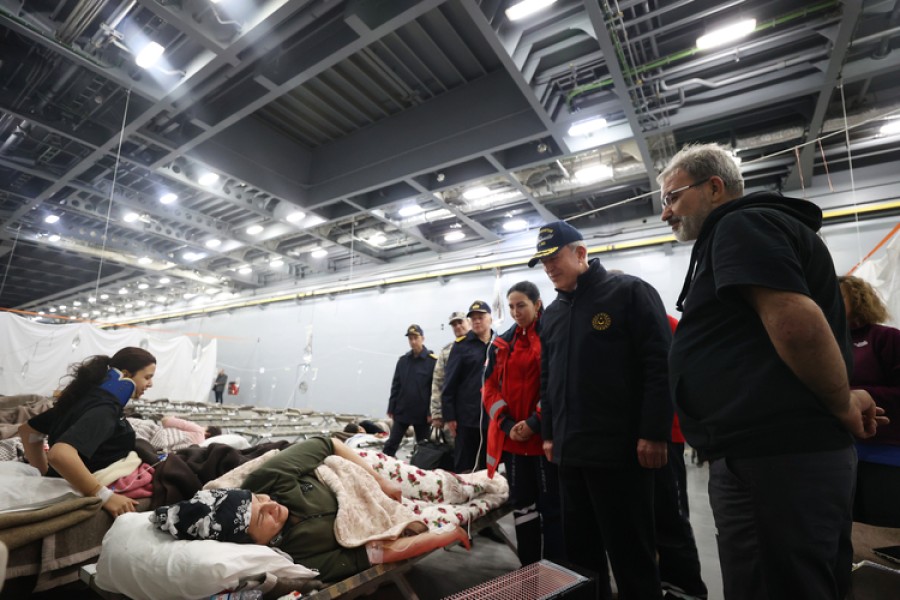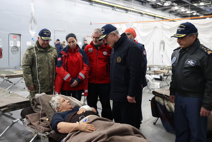 Bakan Akar, beraberindeki TSK komuta kademesi ile depremde yaralananlar için hastane hizmeti vermeye başlayan Deniz Kuvvetleri Komutanlığının TCG Sancaktar gemisinde incelemelerde bulundu, tedavi gören vatandaşlara ziyaret gerçekleştirdi.