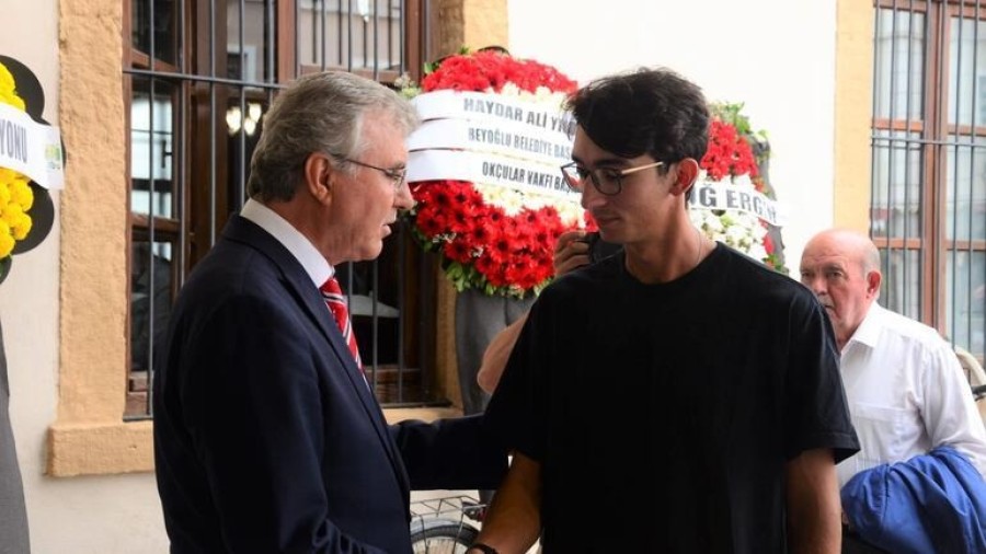 Mete Gazoz, cenazede taziyeleri kabul etti.