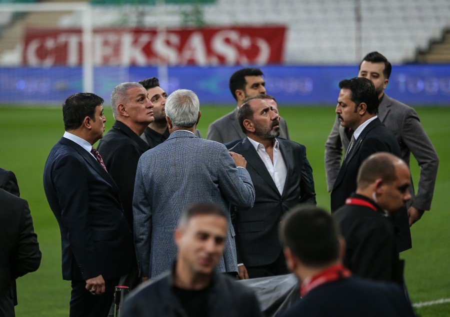 Teknik direktör Vincenzo Montella, teknik heyet ve futbolcular, statta kısa süre yürüdü. Yürüyüşte teknik direktör Montella ve futbolcular, zemini ve stadı inceledi.