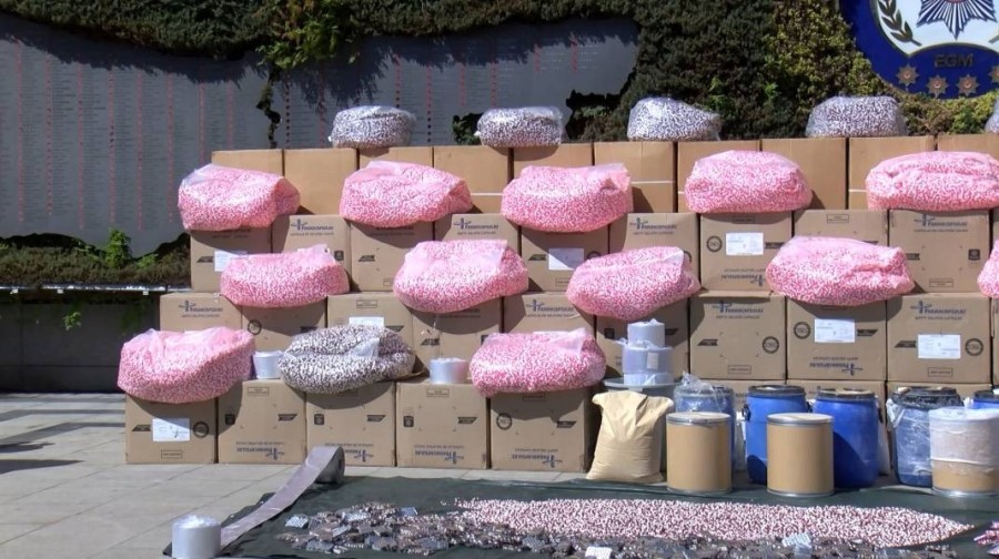 Baskında 14 hap basma ve paketleme makinesi, 3 milyon 815 bin adet sentetik ecza, 12 milyon 200 bin adet basıma hazır hap kapsülü, bir ruhsatsız tabanca, 25 fişek ve bir kuru sıkı tabanca ele geçirildi.
