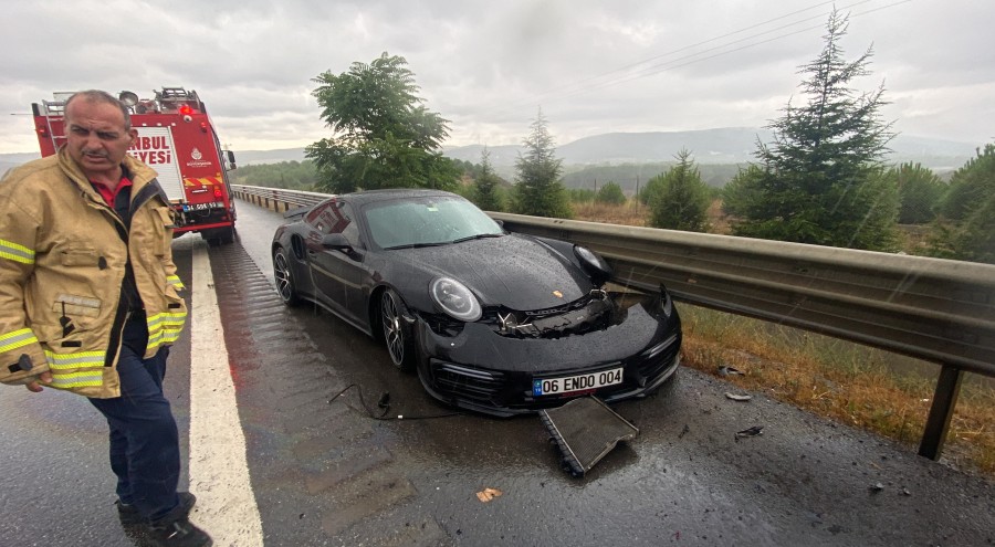 Kuzey Marmara otoyolunda seyir halinde olan 06 END0 004 plakalı Porsche marka araç sürücüsü direksiyon hakimiyetini kaybederek bariyere çarptı.