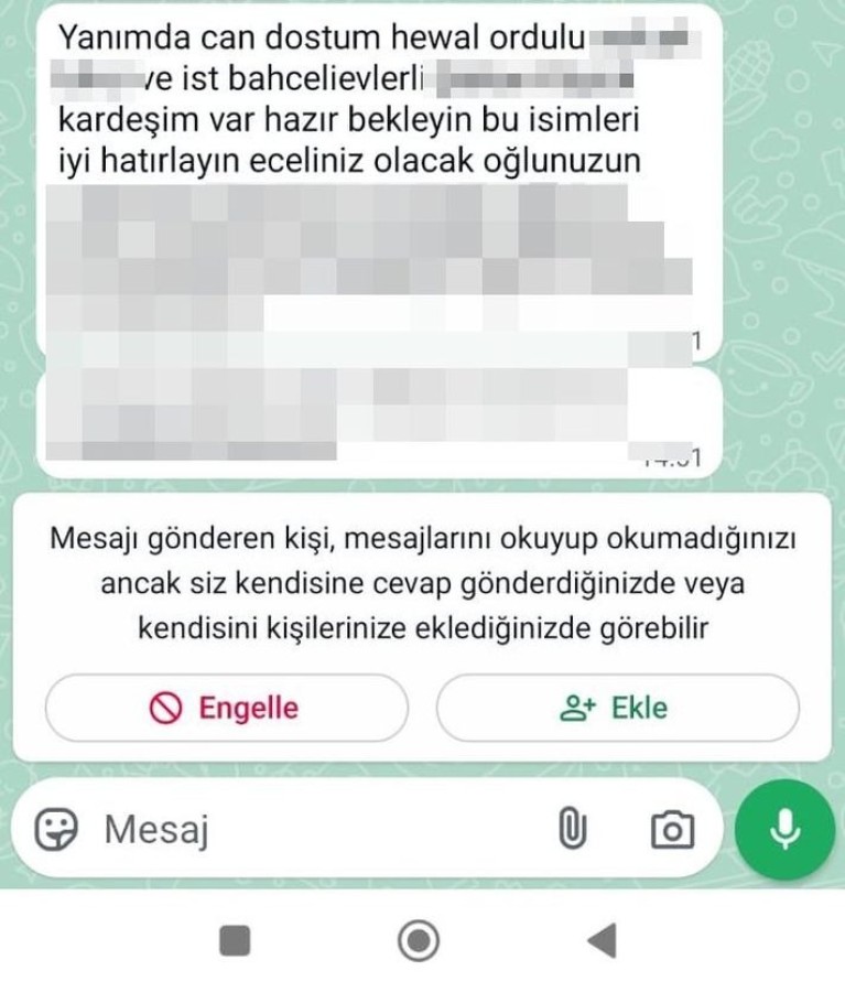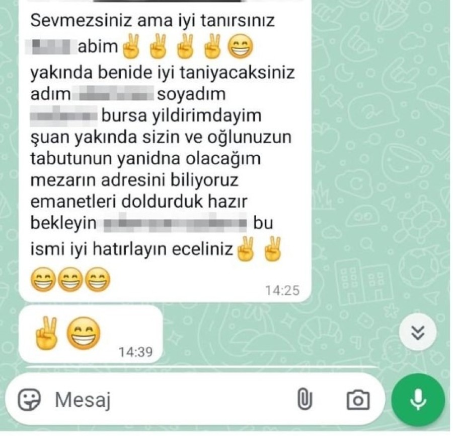 İstanbul Kadıköy'de pazarda öldürülen 15 yaşındaki Mattia Ahmet Minguzzi'nin annesine yönelik yeni tehdit mesajları ortaya çıktı. Mesajların ekran görüntülerini paylaşan ailenin avukatı Dr. Rezan Epözdemir, "Ahlaksız müptezeller, siz insan mısınız? Evladını katlettiğiniz bir anneye nasıl böyle mesajlar atıyorsunuz?" diyerek tepki gösterdi.