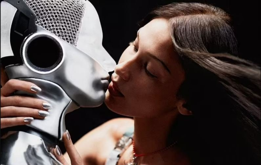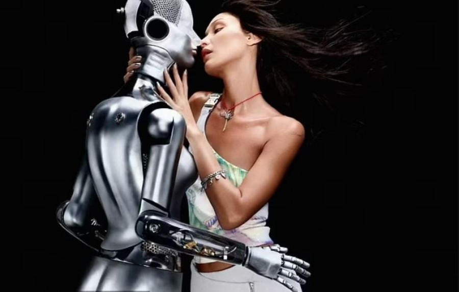 26 yaşındaki Filistin asıllı ABD'li model Bella Hadid, Marc Jacobs'un "Heaven" isimli Sonbahar 2023 kampanyasında kel bir yapay zeka robotuna dönüştü.