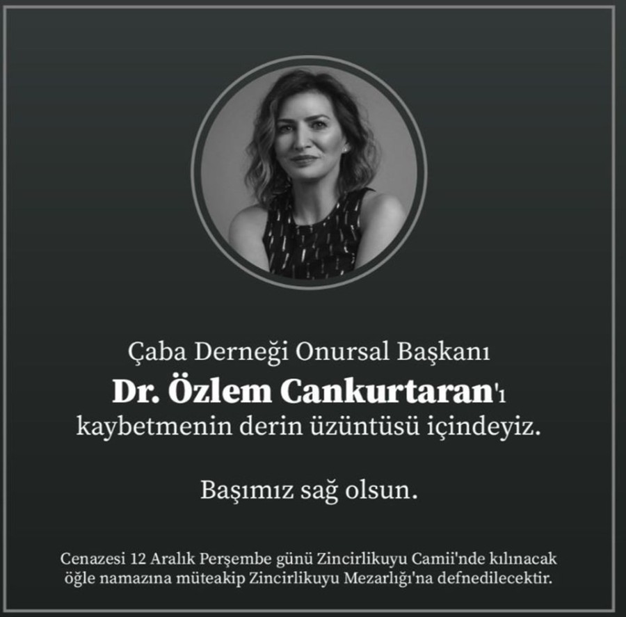 Çaba Derneği vefa haberini; "Çaba Derneği Onursal Başkanı Dr. Özlem Cankurtaran'ı kaybetmenin derin üzüntüsü içerisindeyiz. Cenazesi 12 Aralık Perşembe günü Zincirlikuyu Camii'nde kılınacak öğle namazına müteakip Zincirlikuyu Mezarlığı'na defnedilecektir. Başımız sağ olsun." sözleriyle duyurdu.