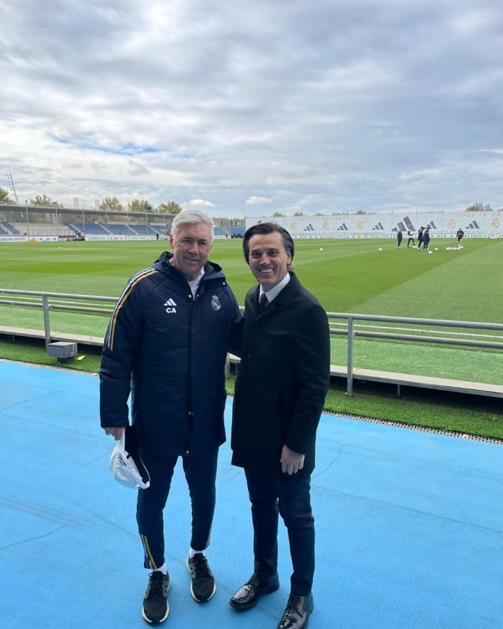 Real Madrid'in antrenman tesislerine gelen Montella, kendisi gibi İtalyan olan teknik direktör Ancelotti'nin jestiyle saha içinde takımın antrenmanını izledi.