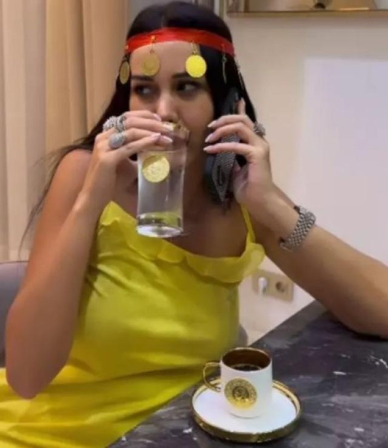 Dilan Polat'ın üzerinde altın bulunan fincan ile kahve içmesi ve kahvesine altın tozu dökmesi de bir süre gündemden düşmemişti.