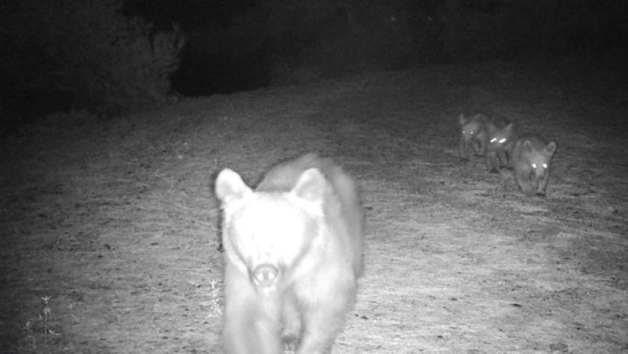 Fotokapanlardan biri boz ayı ailesini görüntüledi.