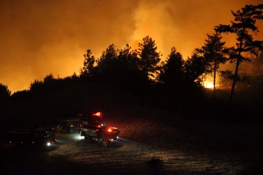 Yangına 7 arazöz 2 su tankeri ve 45 personel karadan müdahale ediyor. 1 helikopterde havadan söndürme çalışmalarına destek veriyor.