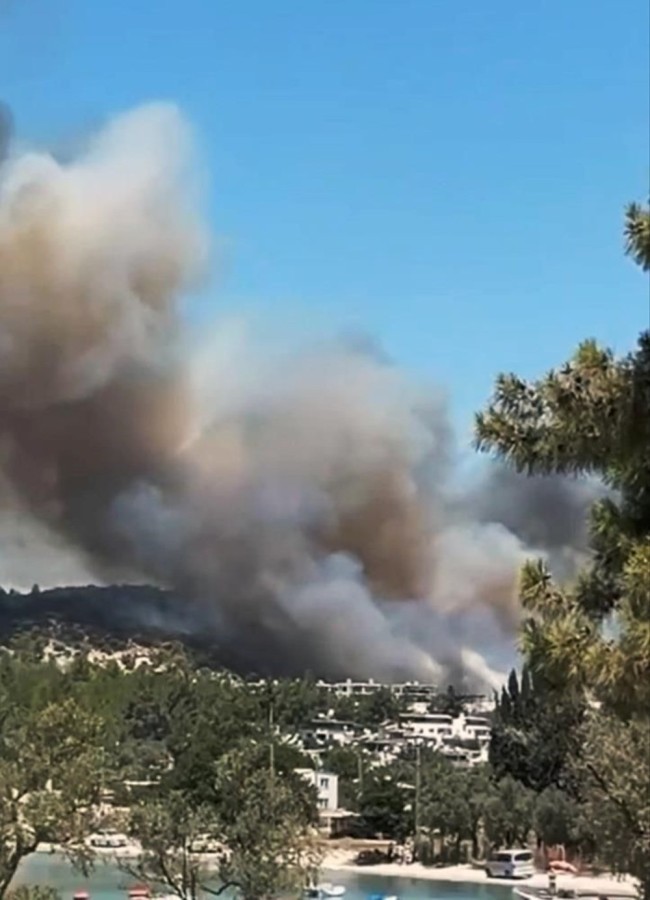 Milas ilçesine bağlı Kazıklı ve Gürçamlar mahallelerinin sınırında başlayan orman yangını sonrası bölgeye çok sayıda arazöz, itfaiye ve hava aracı sevk edildi.