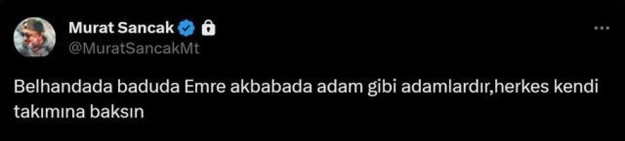 Murat Sancak sosyal medya hesabından yaptığı paylaşıma, "Younes Belhanda da, Badou Ndiaye de, Emre Akbaba da adam gibi adamlardır, herkes kendi takımına baksın" notunu düştü.