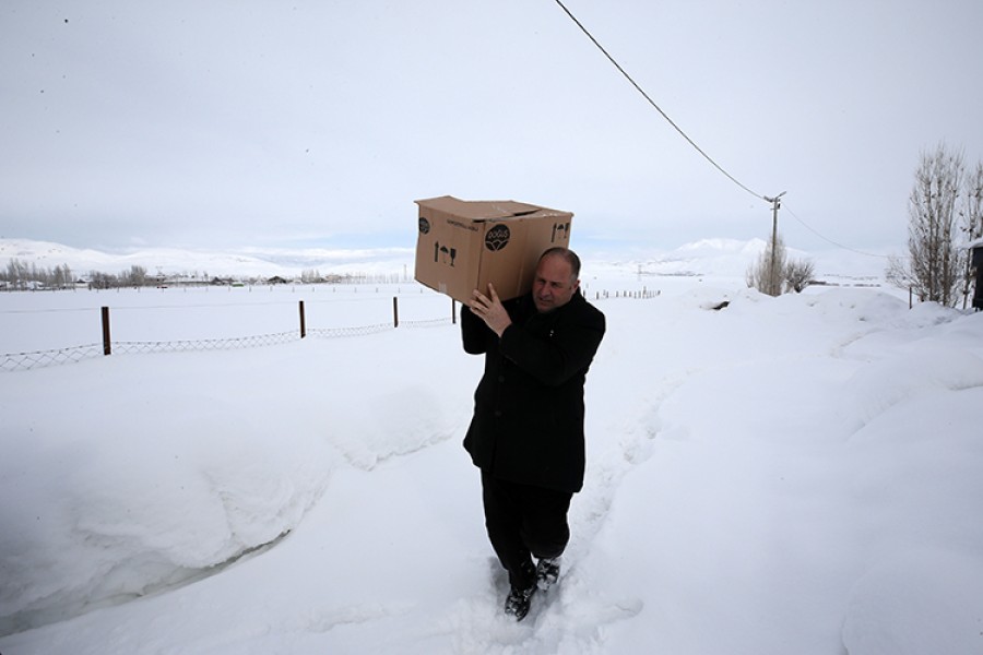 Kartonlara bırakılan ekmekler, köy muhtarı Hüseyin Sevinç tarafından, AFAD Lojistik Deposu'ndaki yetkililere teslim edildi.