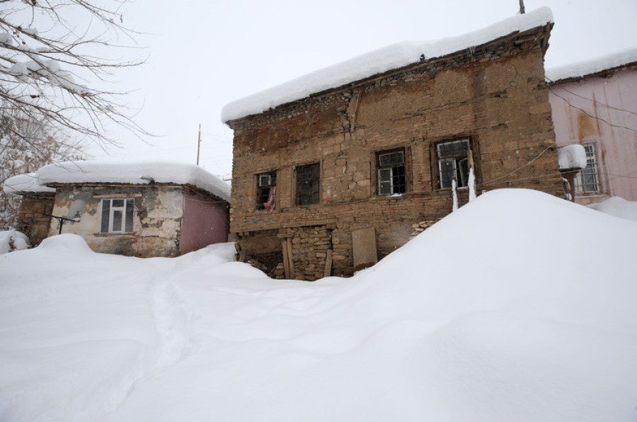 Türkiye'de en çok kar yağan illerden Muş'ta, bir haftadan bu yana aralıklarla devam eden kar nedeniyle araçlar ve tek katlı evler kara gömüldü.