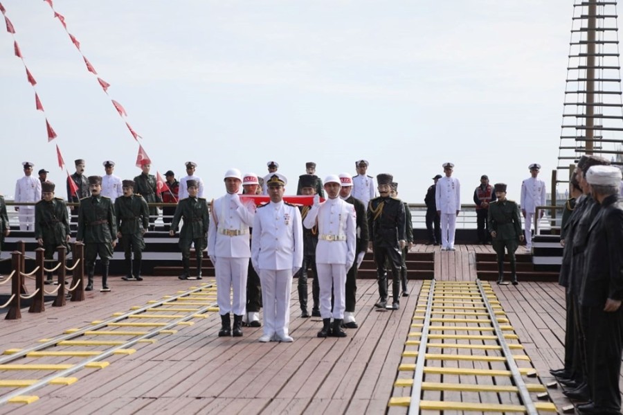 Törende askerler, Milli Mücadele'yi başlatmak üzere Mustafa Kemal Atatürk ve silah arkadaşlarının karaya çıkışını canlandırdı. Askerler, karaya çıkardıkları Türk bayrağını izcilere teslim etti. İzciler, Türk bayrağını 19 Mayıs Atatürk'ü Anma, Gençlik ve Spor Bayramı etkinliklerinin yapılacağı İlkadım Atletizm Stadyumu'na kortej eşliğinde götürdü.