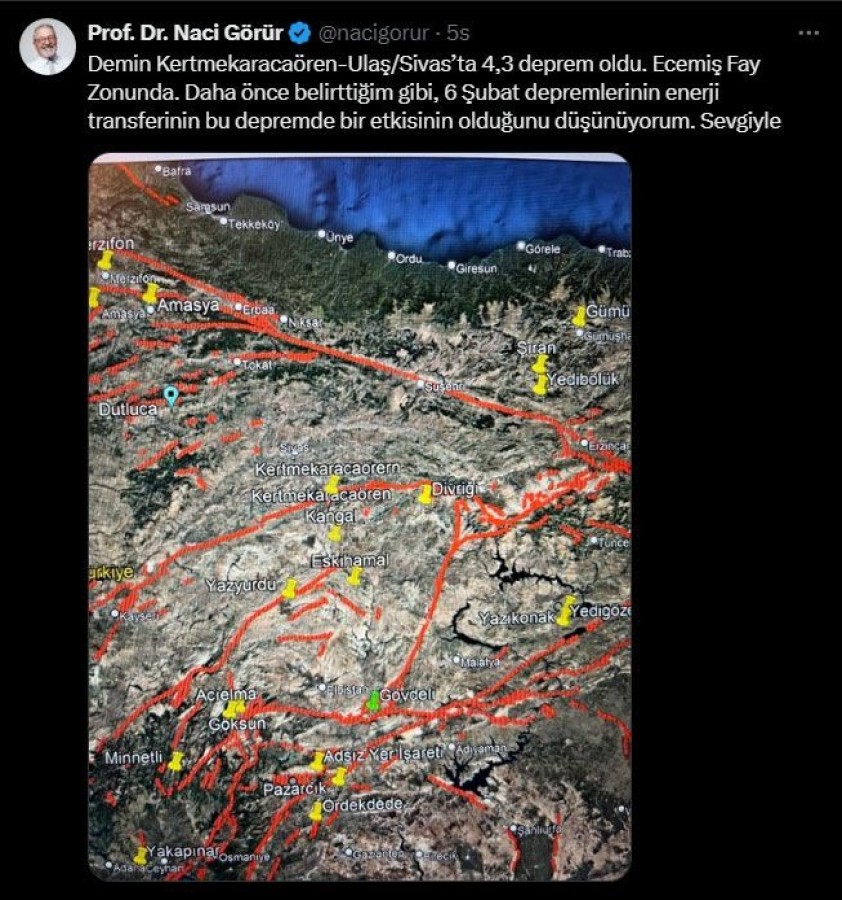 Görür, Sivas'taki 4.4'lük depremle ilgili 6 Şubat'ı işaret etti.
