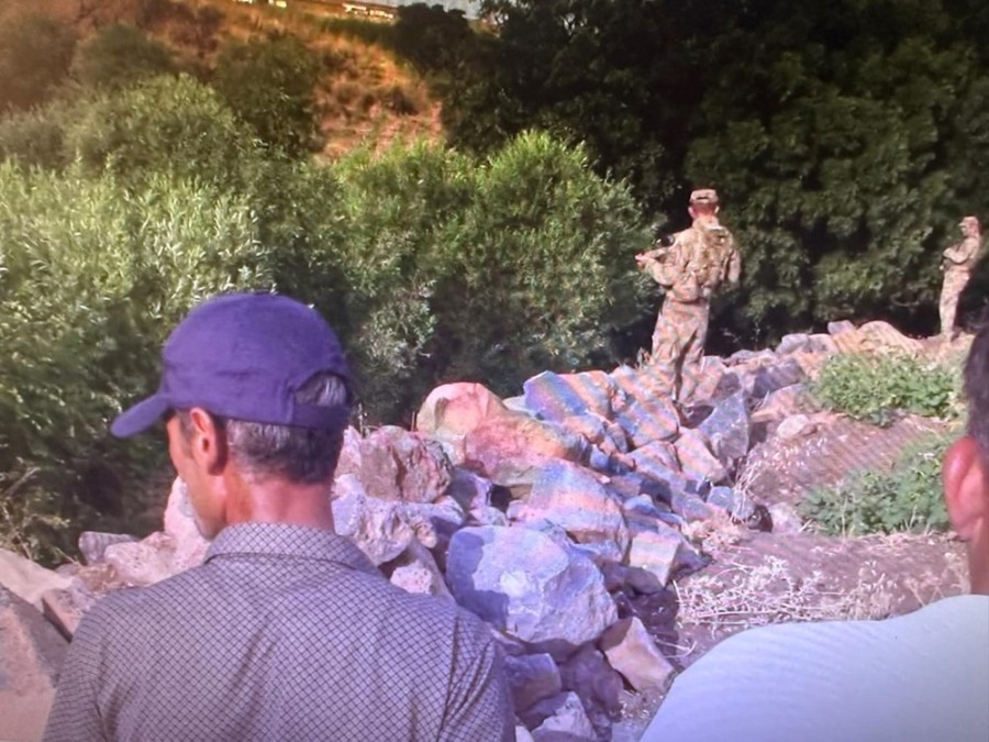 Bahtiyar, kaçma şüphesine karşı kelepçeli bir şekilde bölgeye getirilirken, keşif Bahtiyar'ın Narin'in cansız bedenini aldığını iddia ettiği taşlı yoldan başlıyor.
