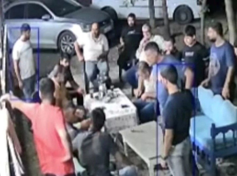 Bu görüntüye göre, genç adama, Güran ailesinin büyüklerinden Erhan Güran'ın elini sephaya vurarak, tehdit eder veya uyarır gibi birşeyler anlattı. Bir süre sonra kolundan tutulan genç adam oturduğu yerden kaldırıldı ve tartaklanarak uzaklaştırıldı. Peşinden de birkaç kişi gitti.