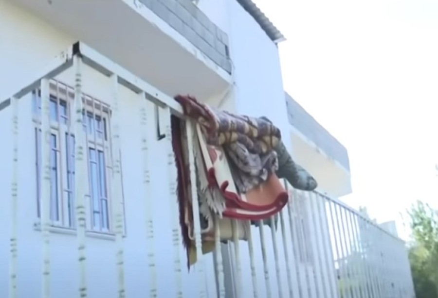 Halk TV'den Ferit Demir'in ortaya çıkardığı ayrıntıda, evin balkonunda kurumaya bırakılmış birçok halı, yolluk, örtü ve ayrıca battaniye de görülüyor.