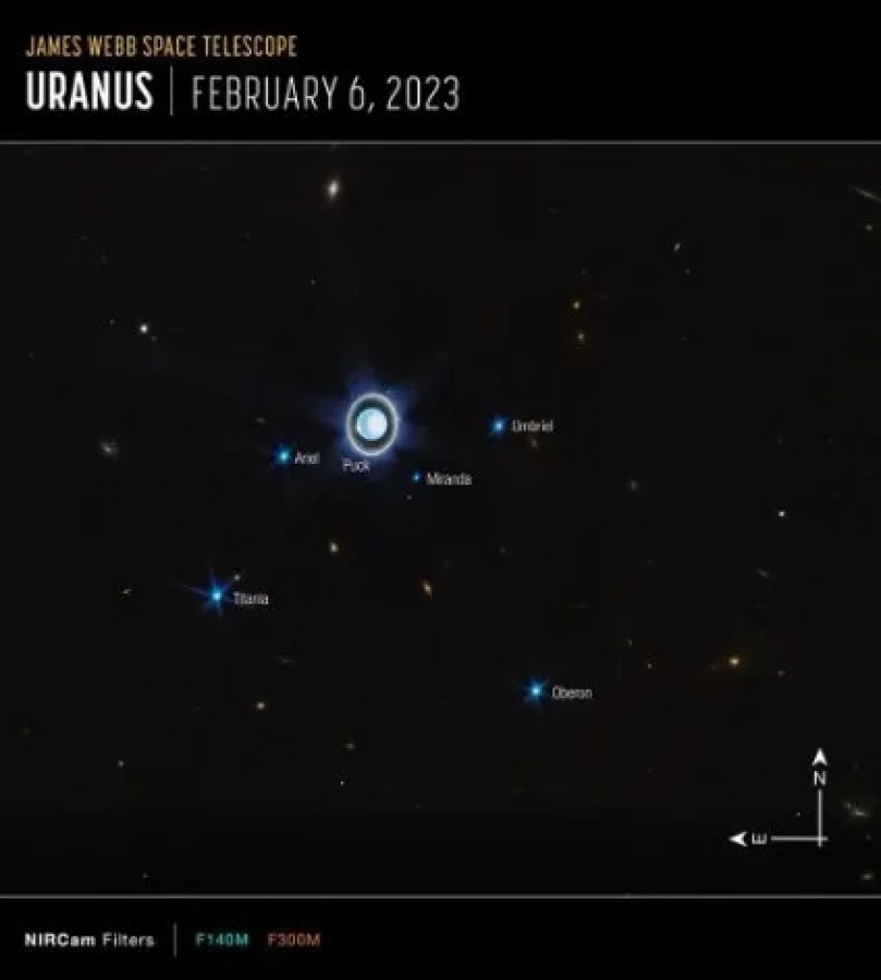 James Webb'in görüntüleri, gezegenin görünmeyen halkalarını gösterirken, 27 uydusundan sadece birkaçını tespit edebildi.