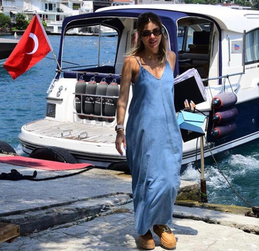 Tekne ile Bebek iskelesine gelen Nazlı Sabancı, basın mensuplarıyla ayaküstü sohbet etti.