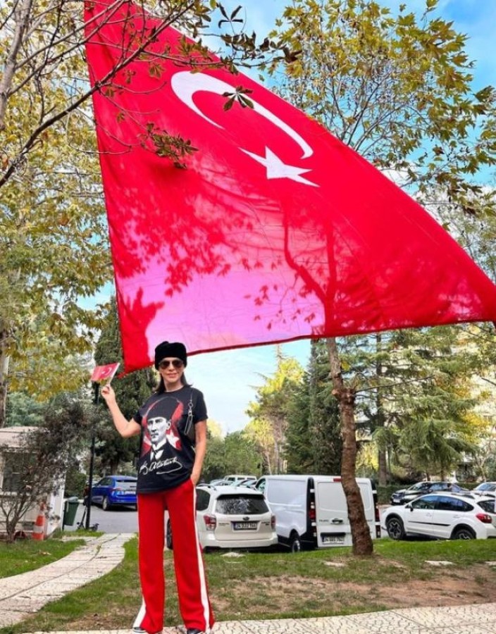 Güzelliği ve oyunculuğuyla tüm dikkatleri üzerine toplayan Çehre 29 Ekim Cumhuriyet Bayramı'nı coşkuyla kutlayan isimler arasında yer aldı.