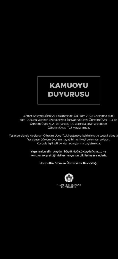 Öte yandan, Necmettin Erbakan Üniversitesi Rektörlüğü de yaşanan olayla ilgili X (twitter) hesabından açıklama yaptı: