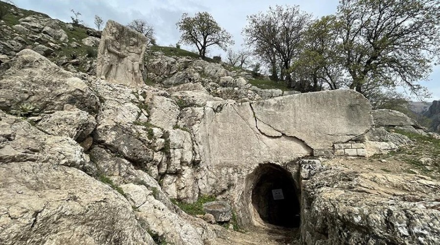 Bölgedeki kaya mezarından bazı taşların depremler nedeniyle düştüğü aktarıldı.
