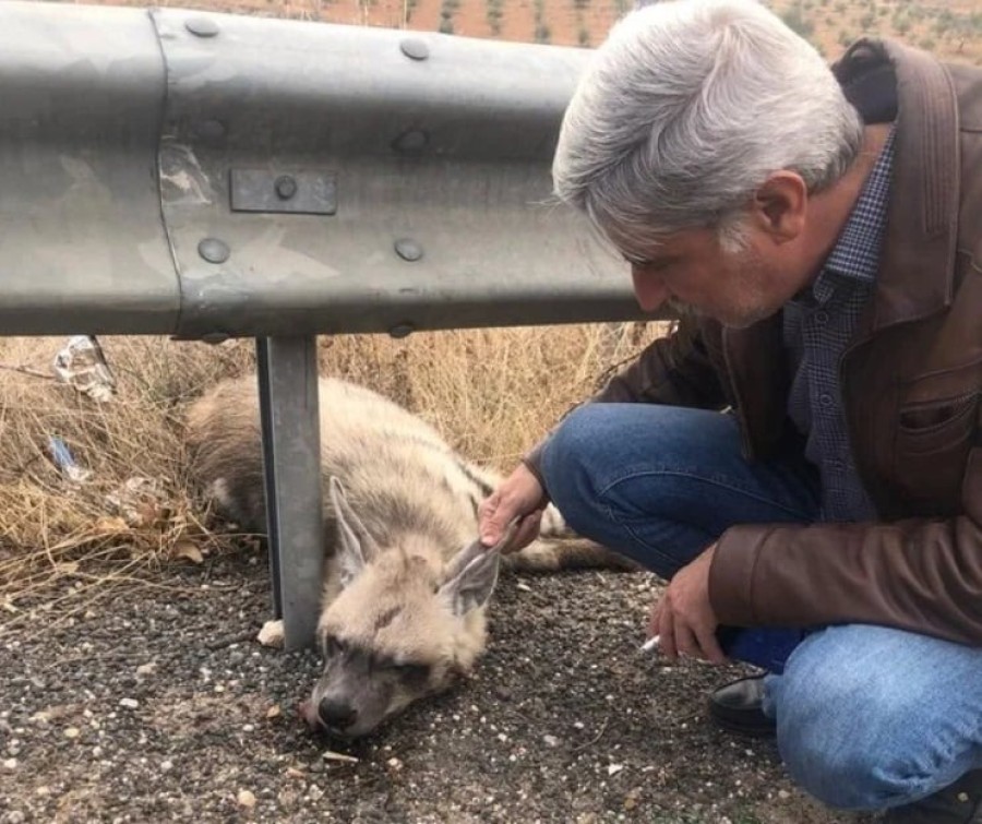 Şanlıurfa'nın Halfeti ilçesinde nesli tükenme tehlikesi ile karşı karşıya olan çizgili sırtlan, araç çarpması sonucu öldü.