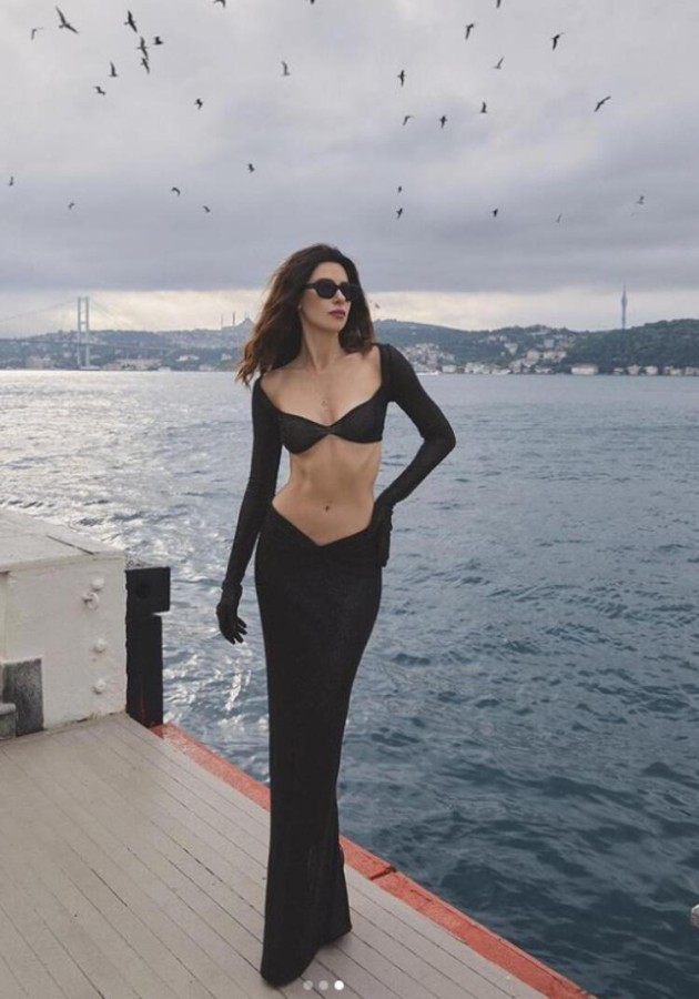 Dekolteli etek-büstiyer kombiniyle kamera karşısına geçen ünlü isim, paylaşımına "Mayoyla yakalandı" mesajını yazarak; kendi fotoğraflarına başlık atmayı da ihmal etmedi.