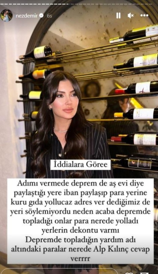 Nez Demir bununla da kalmadı ve deprem döneminde yaşananlara dair de iddialarda bulunup "Bana bak pislik kimsin sen ya? Üslup çok önemli ya sen kimsin ya sen bir kendine bak ya! Sen bizi eleştirecek durumda mısın?" diyerek isyan etti.