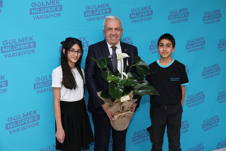 Nilüfer Cavit Çağlar Ortaokulu 7'nci sınıf öğrencileri Celal Aras Erten, arkadaşları Zeynep Nehir Kesen ve Hüsnü Mete Özcan, Müdür Yardımcısı Ali Zafer Şencan, Türkçe Öğretmeni Deniz Dilek Toroslu ile birlikte Nilüfer Belediye Başkanı Şadi Özdemir'i Halk Evi'ndeki makamında ziyaret ettiler. Başkan Şadi Özdemir, 23 Nisan Ulusal Egemenlik ve Çocuk Bayramı nedeniyle temsili olarak koltuğunu Celal Aras Erten'e devretti. Makama geçen çocuk Başkan, bazı konularda talimatlar verdi.
