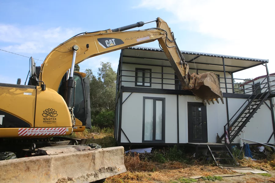 İKİ KONTEYNIR YAPI YIKILDI