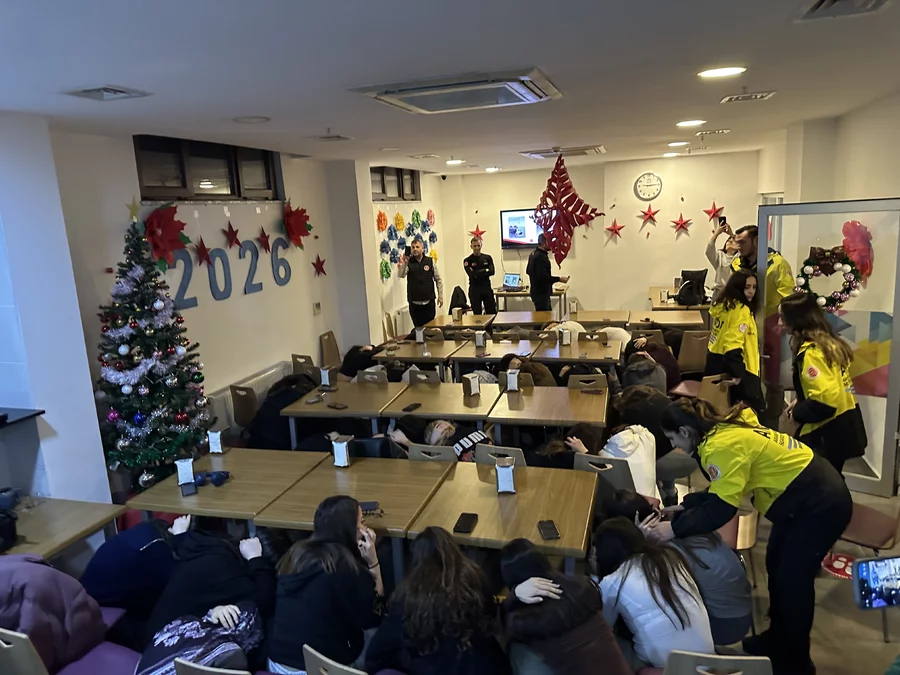 Eğitimlerde teorik bilgilendirmelerin yanı sıra, tahliye planları gözden geçirildi ve afet anında paniğin önüne geçilmesi için yapılması gerekenler anlatıldı.