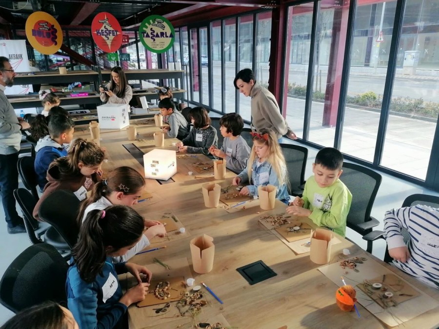 Günün ikinci etkinliği olan "Dönüşüm" temalı atölyede ise odak noktası edebiyat ve doğa gözlemi oldu. Franz Kafka'nın Dönüşüm romanından esinlenilerek hazırlanan içerikte çocuklar, böceklerin ve küçük canlıların dünyasını mercek altına aldı. Makro fotoğraflar üzerinden canlıların renk, desen ve biçimlerini detaylıca inceleyen katılımcılar, bu gözlemlerden yola çıkarak kendi hayali böceklerini tasarladı.