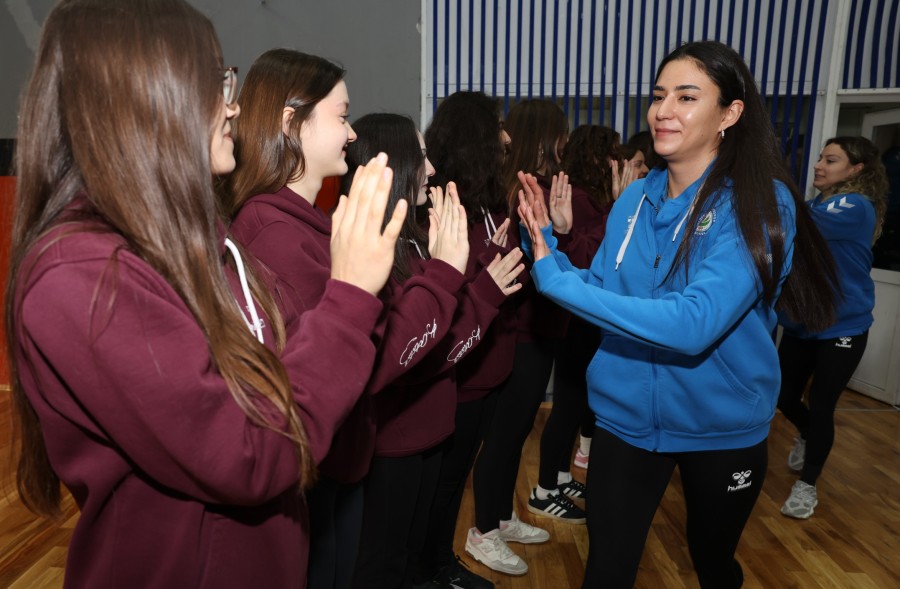Nilüfer Belediyespor Eker Kadın Voleybol A Takımı, Ahmet Erdem Anadolu Lisesi öğrencileriyle söyleşi gerçekleştirdi. Öğrencilerin sorularını yanıtlayan başarılı sporcular, öğrencilere hayallerinin peşinden koşmaları tavsiyesinde bulundular.