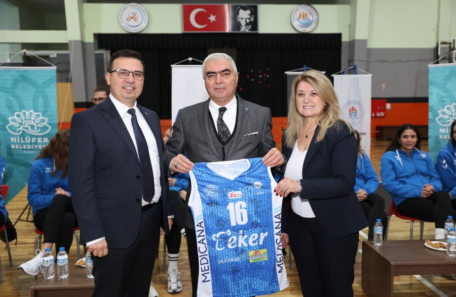 Söyleşinin ardından söz alan Nilüfer Belediye Başkan Yardımcısı Okan Şahin ise kendisinin de bu okulun 2001 yılı mezunu olduğunu ve o zamanki isminin Milli Piyango Anadolu Lisesi olduğunu hatırlattı. Nilüfer Belediyesi'nin her zaman gençliğin ve sporun yanında olduğunu ifade eden Şahin, "Sporun ne kadar kıymetli olduğunu ve gençlerimiz için ne kadar öncelikli olması gerektiğini bilen bir kurumuz. Bununla ilgili de yatırımlarımıza devam ediyoruz. Bu dönem takımımız da çok başarılı ve güzel işler çıkartıyor. Kendilerine teşekkür ediyorum" dedi.
