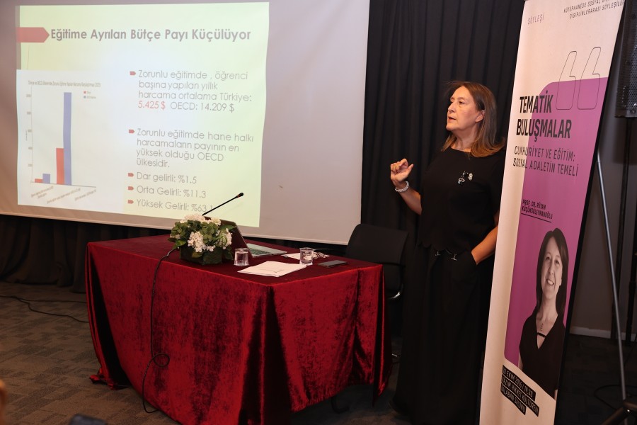 Nilüfer Belediyesi tarafından düzenlenen "Tematik Buluşmalar" kapsamında, Prof. Dr. Rüyam Küçüksüleymanoğlu, Cumhuriyet, eğitim ve sosyal adalet ilişkisini konu alan bir söyleşi gerçekleştirdi.
