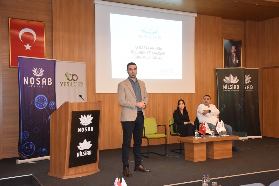Nilüfer Organize Sanayi Bölgesi (NOSAB) Akademi etkinlikleri kapsamında, NOSAB'da faaliyet gösteren firmaların temsilcilerine yönelik olarak 'İş kazalarında çalışan ve işveren sorumlulukları' konulu bir panel düzenlendi.