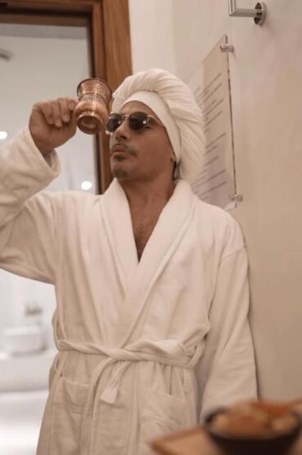 Nusret, bakır bir bardaktan içtiği ayranla ferahladı. En çok dikkat çeken ise güneş gözlükleriyle hamama gitmesi oldu.