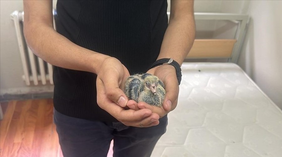Kastamonu'da bayram tatilinde okul pansiyonunun açık unutulan penceresinden içeri giren güvercinin yatağa bıraktığı yumurtadan çıkan yavru lisenin minik misafiri oldu.