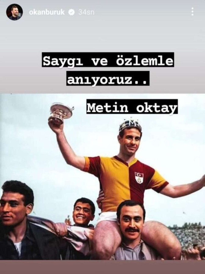 Süper Lig ekibi Galatasaray'ın teknik direktörü Okan Buruk, sosyal medyadan yaptığı takipçilerinin beğenisine sunduğu paylaşımla ölüm yıldönümünün 32. yılında Türk futbolunun efsanesi Metin Oktay'ı andı.